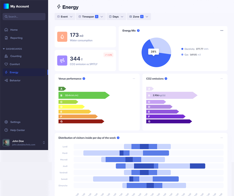 Maximisez la rentabilité de vos actifs immobiliers et la satisfaction de vos clients avec Technis. Notre plateforme de données fournit des informations sur le comportement des visiteurs, le trafic et la performance des bâtiments, ce qui vous permet d’optimiser l’agencement et la répartition des locataires, de réduire les goulots d’étranglement et d’augmenter la satisfaction. Laissez Technis vous aider à créer un lieu prospère qui incite les visiteurs à revenir.